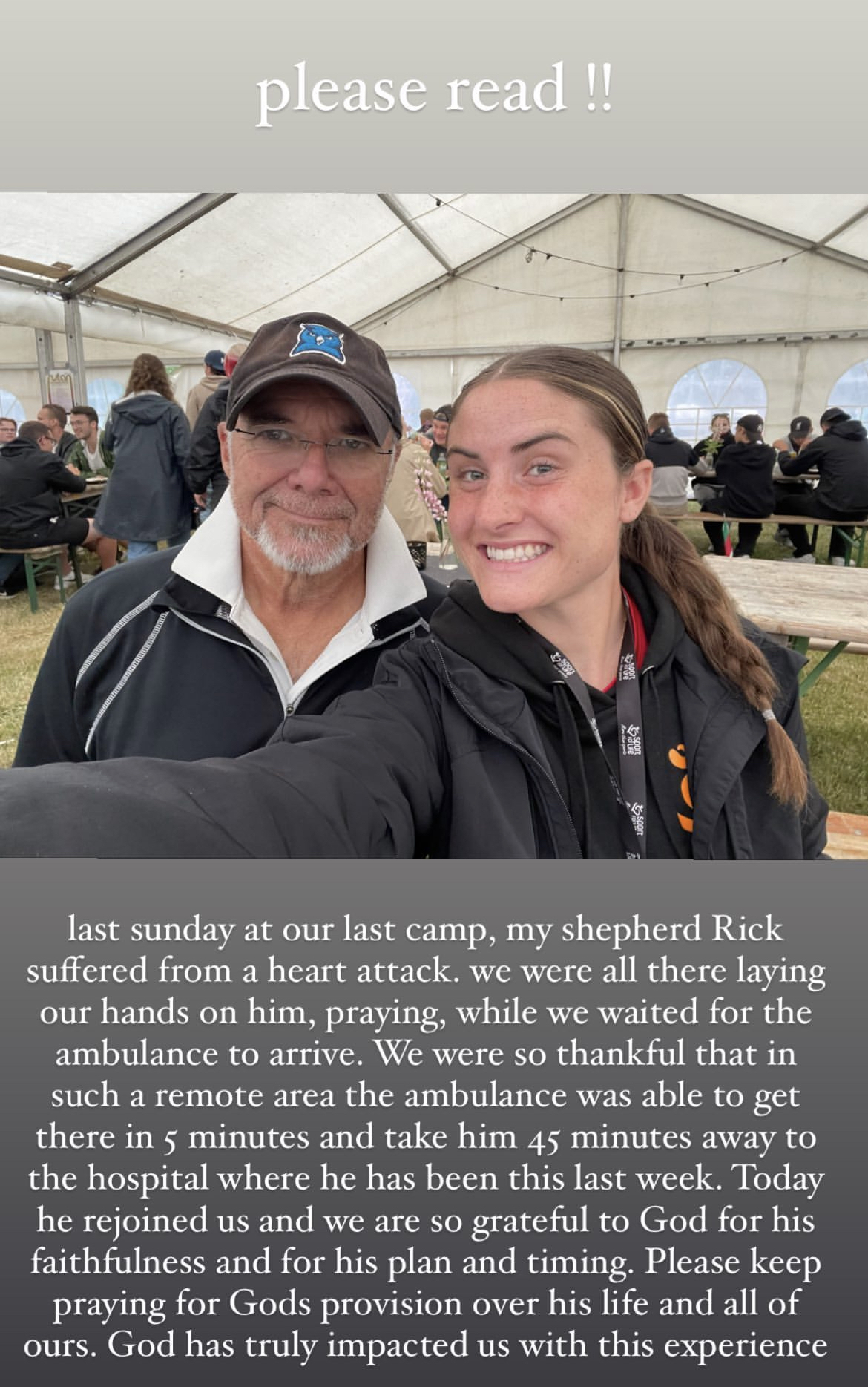 We were winding up being at this amazing place when Rick started to feel chest pain and went into full heart attack. It was the most surreal feeling I have ever had. I will never forget the image of the kids (interns 🙂 ) surrounding him in prayer and just believing that God would take care of him.